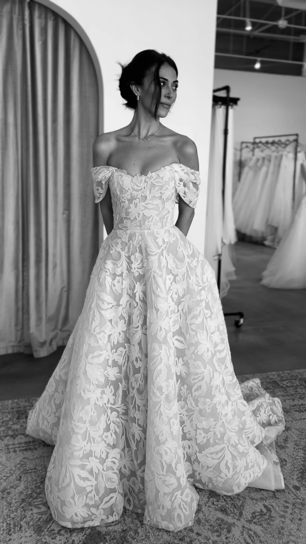 we strive to make this process as easy as possible for you and communicate regularly between the two brands. our ultimate goal is to help you find the right dress for you. give us a call with any questions!