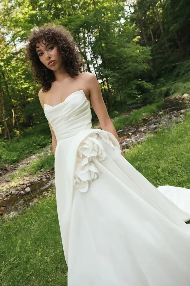 the latest collection from jenny yoo has arrived, bringing new contemporary bridal styles infused with classic charm. the jenny yoo collection is celebrated for its minimalist approach, offering modern brides a sophisticated take on the traditional bridal aesthetic. expect to find timeless elements such as covered buttons, elegant bodice draping, subtle side slits, and a variety of refined bridal silhouettes.