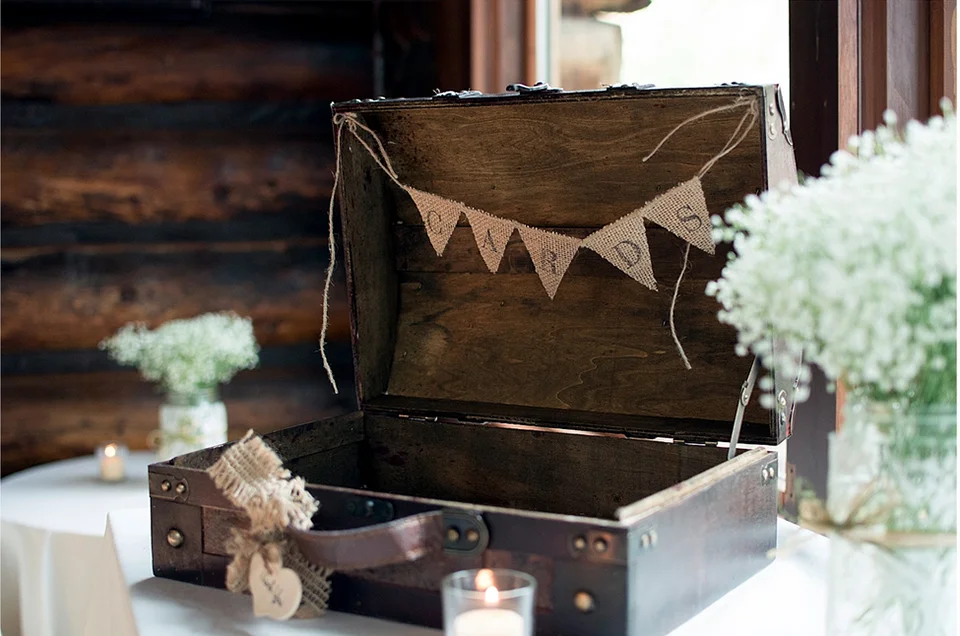 The reception was held nearby at the Twin Owls Steakhouse, a rustic mountain lodge, with a live band. Touches of light florals accented with twine and burlap were fluttered throughout the rustic wood space where the guest enjoyed dinner from the steakhouse.
