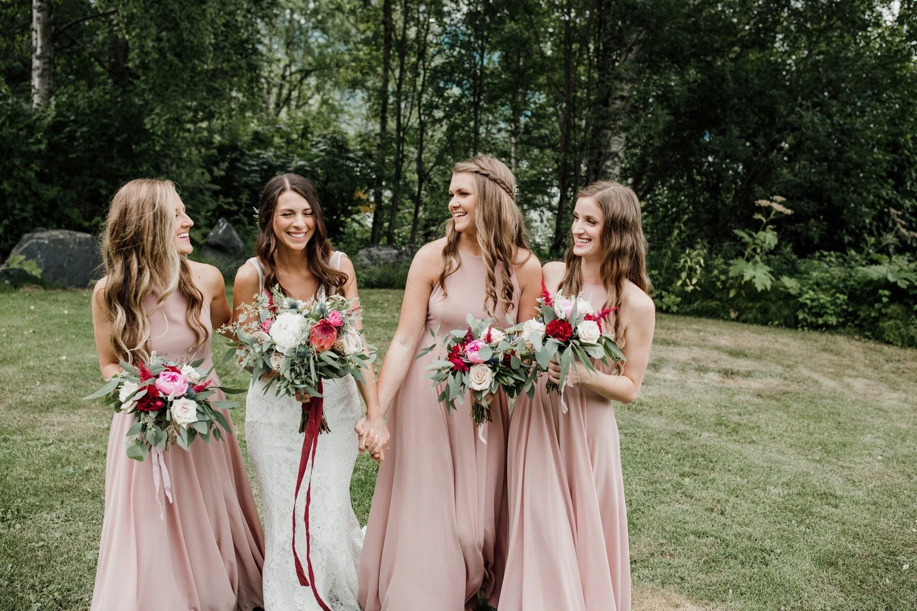 Dress: Truvelle / Photographer: Conlee Arpin / Venue: Turnagain View Lodge & Fox Hollow Chalet (Alaska) / Planning + Styling: Bride / Florist: AK Fleurishing & Paper Peony / Other Special Vendors: Cake: ArdyCakes / Dessert: http://midnightsuncakery.com/ / Hair: Conlee Arpin