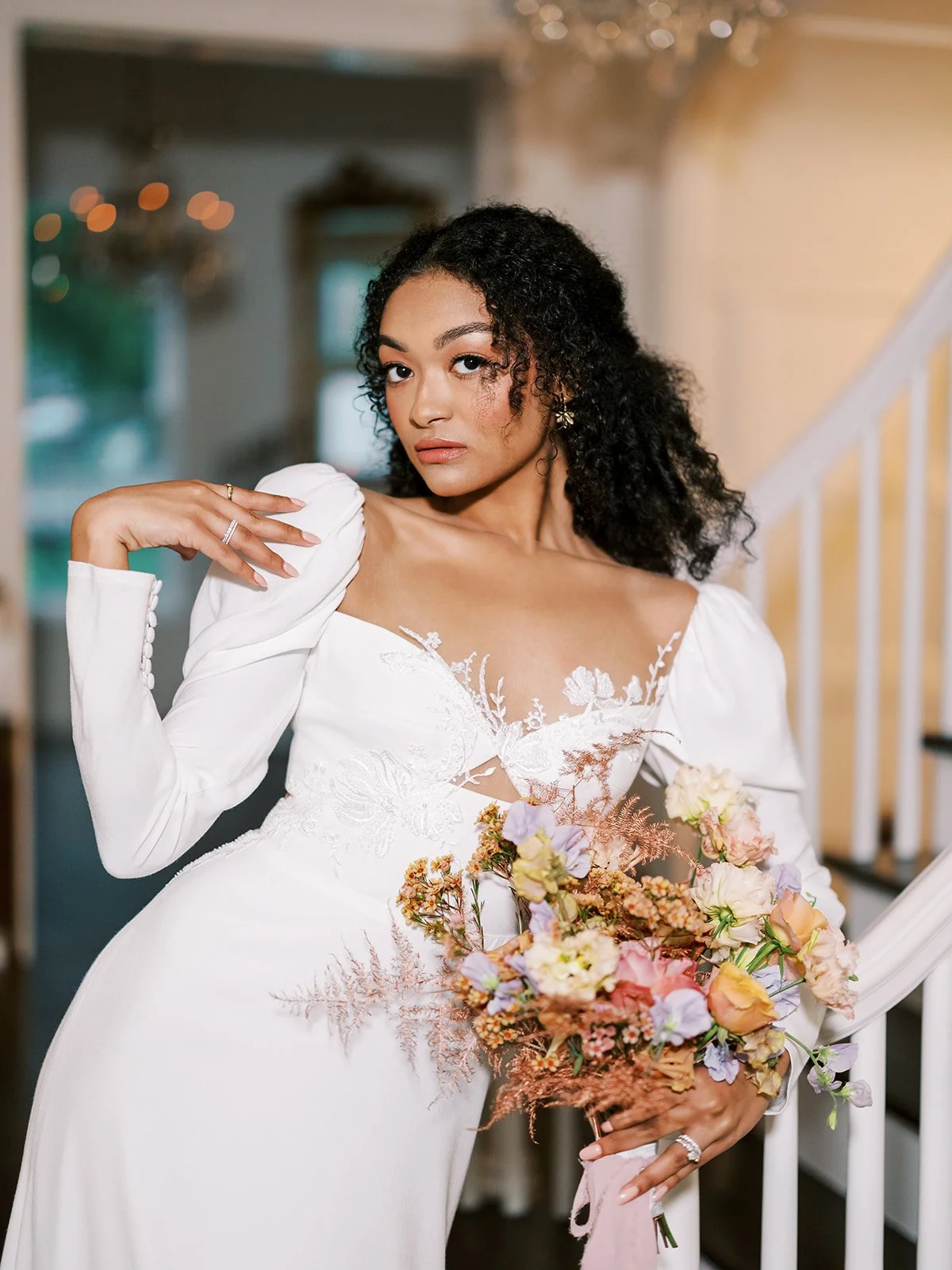 this romantic styled wedding in round rock, texas came to life in the presence of the woodbine mansion’s pristine gardens and posh interior. from modern bridal portraits in front of their gilded antique mirror to wedding dress shots on the curved staircase, every element of this photoshoot was influenced by the sophisticated space the woodbine mansion carefully curated.